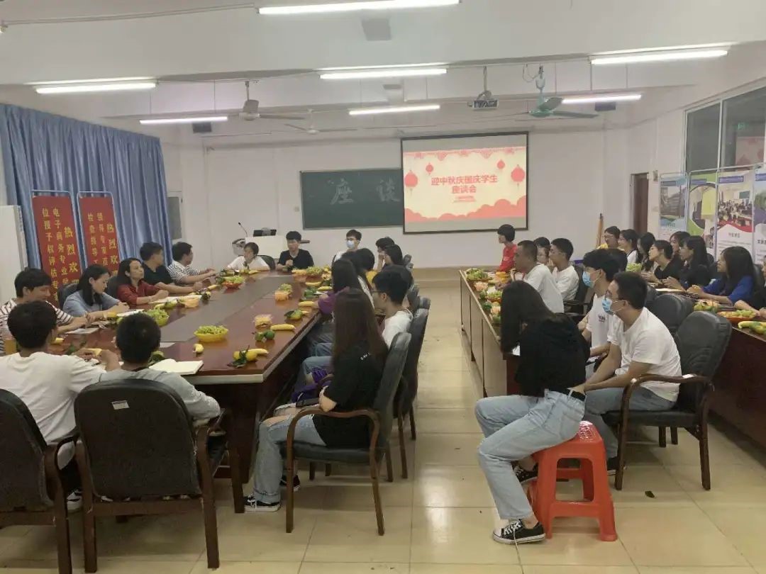 2020年9月28日晚,太阳成集团tyc151cc新生代表中秋暨国庆座谈会在七栋601召开。公司党总支书记杨惠、办公室主任许就平、全体辅导员以及新生代表近四十人欢聚一堂,喜迎中秋佳节,畅谈美好未来。本次会议由办公室主任许就平主持。
