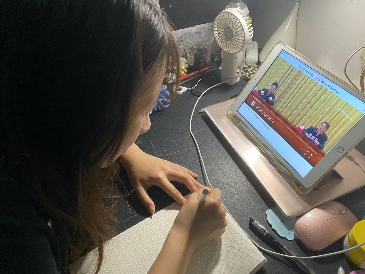 卢雪俏同志:今晚通过观看和学习十九届五中全会精神中央宣讲团首场报告会视频,加强了我的理论学习,提升自我理论素养,锤炼党性。我认为我们要始终把学习党的十九届五中全会精神作为今后一个时期的首要政治任务。通过加强学习,深刻领会五中全会的精神实质和丰富内涵,切实提升思想认识,把五中全会的精神传递到身边的同学和朋友。以学习贯彻党的十九届五中全会精神为机遇,推动本职工作创新发展。立足本职工作,围绕中心,服务大局,紧紧围绕五中全会提出的总体要求、目标任务和战略重点,进一步查找工作中存在的问题,明确发展目标,注重实干,勇于争先,担当作为,始终把人民对美好生活的向往作为奋斗目标,为实现中华民族伟大复兴的中国梦而不懈努力!