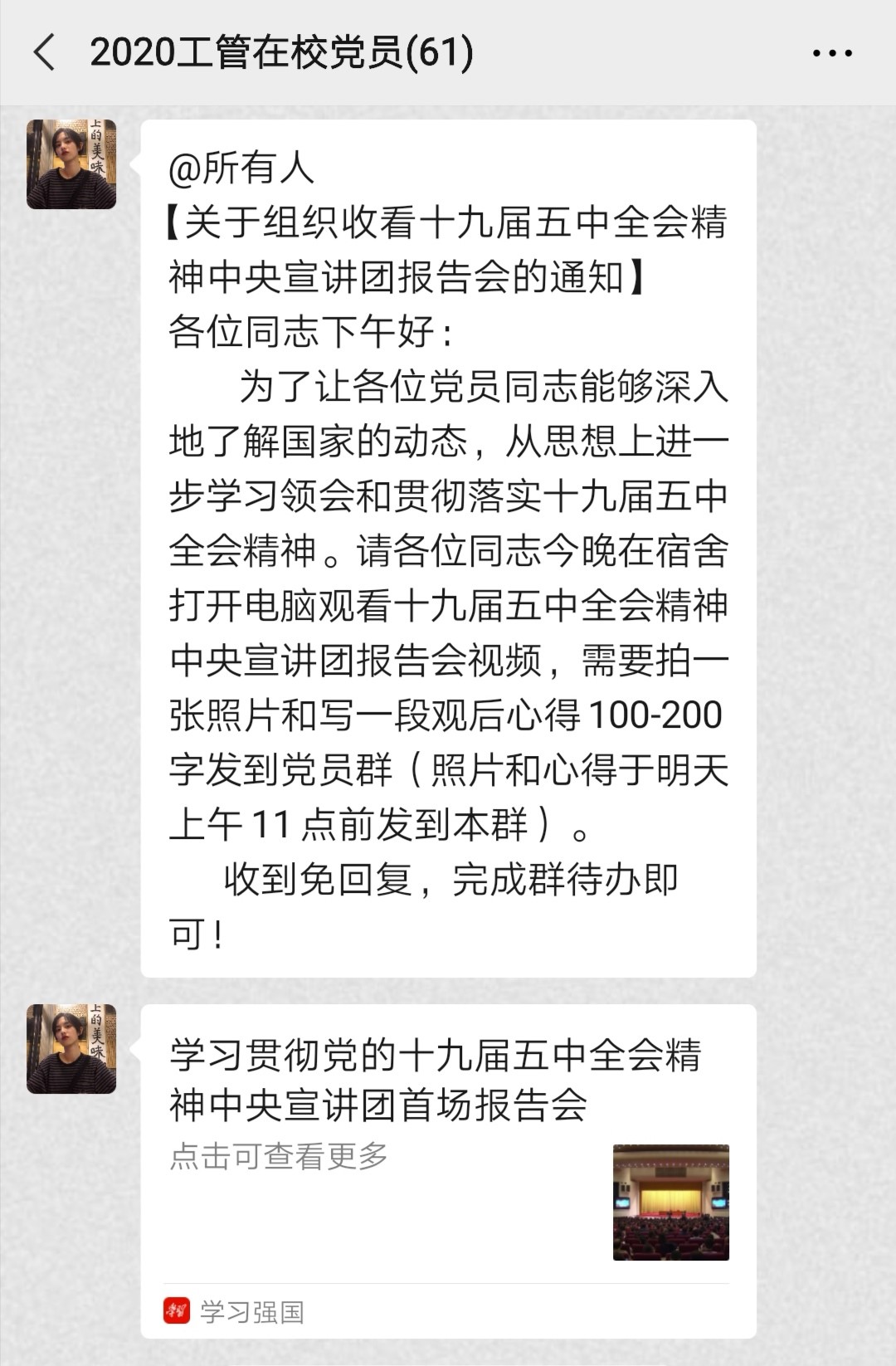 2020年11月17日,为了让各位党员同志能够深入了解国家的动态,从思想上进一步学习领会和贯彻落实十九届五中全会精神,公司党总支组织学习收看了十九届五中全会精神中央宣讲团报告会的视频,61名党员同志观看后收获多多,感触颇深。
