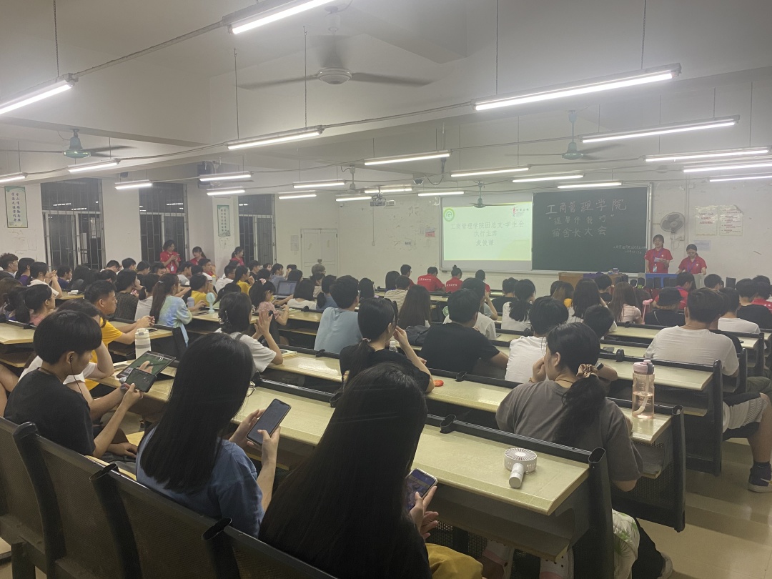 会议在轻松愉悦的氛围中接近尾声。常务主席颜晓玲上台发言总结,她对到场人员表示感谢,点明本次宿舍长大会的目的是为了让同学们养成爱宿舍,护宿舍,守宿舍的良好习惯。颜晓玲主席激励在座各宿舍长带领宿员共同努力,打造更加和谐、宜人居住的宿舍,构造良好的宿舍氛围,营造良好的宿风宿纪,促进情感,共同创造美好的宿舍。