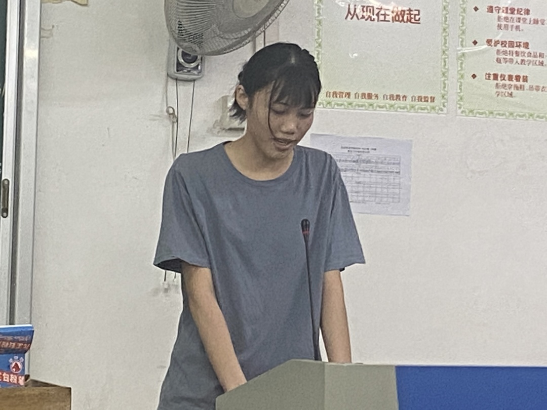 先进宿舍长代表黄艳上台发言分享经验。她表示整理宿舍内务是构建和谐、整洁温馨宿舍的前提,在日常生活中要明确每日值日生、固定物品的摆放、隔一周进行一次大清洁、统一宿舍熄灯时间,希望大家能借鉴经验,协作互助,共同营造良好、和谐的寝室生活环境。