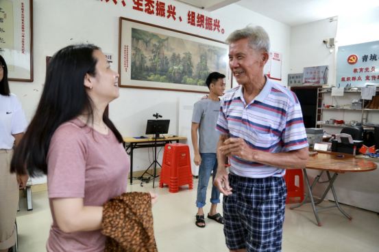 70多岁的黄爷爷情绪激昂地给老师们和“语”惠启航队队员们讲解了关于青坑村的光辉历史——“青坑省”的来源,并了解到具体的历史缘由,表达了青坑村村民源远流长浓厚的感恩之情。在接下来的交流中,黄爷爷解释凤梨是这边乡村经济主要来源之一,并且村里人都在种植凤梨,凤梨产业园就在青坑村附近。黄爷爷感慨并自豪现在网络自媒体时代的快速发展,能将村里的凤梨打开国门,走向全世界。
