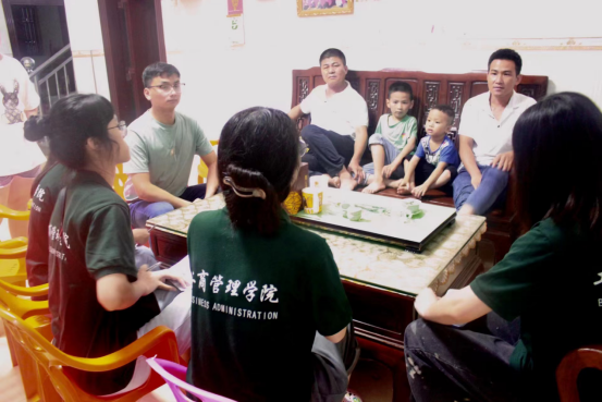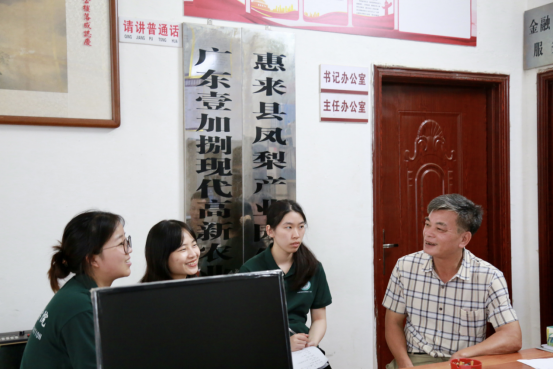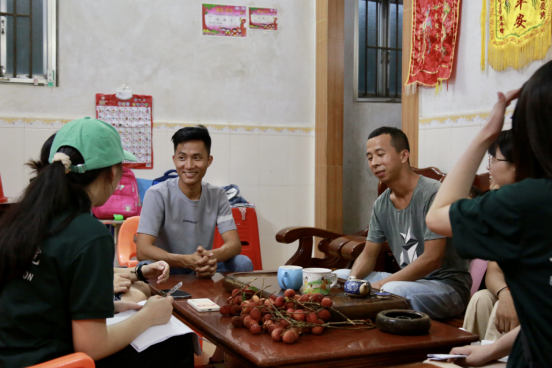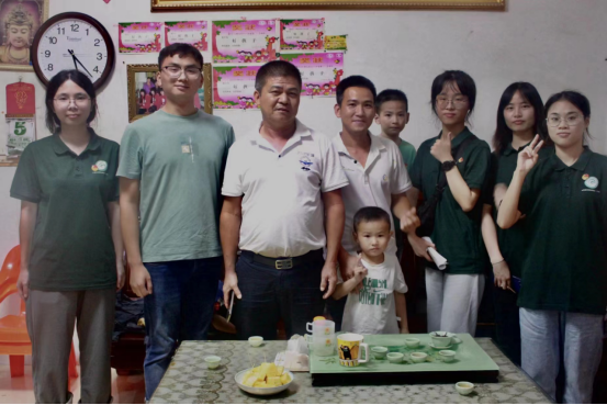 随后,“语”惠启航队队员分为两个调研小组,分别在村里走访当地村民,了解居民的生活情况。第一组队员走访了共产党之家,采访黄先生一家,了解到他的哥哥是一名共产党员,并在村委工作。黄先生一开始在外地务工,后回来村里种植凤梨,因为凤梨是惠来五宝之一,带动惠来文化、经济发展,为乡村助力,致力于乡村凤梨生产事业,减少了本地的人才流失。