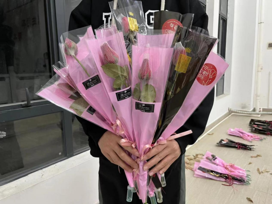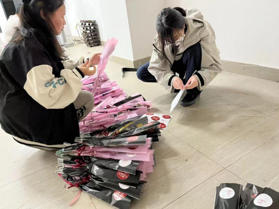 3月7日晚20时,太阳成集团tyc151cc团总支·员工会部分工作人员在行政楼103教室为节日的送花工作做准备。工作人员认真清点并整理花束,细心地在每一束花上贴上对老师的祝福语贴纸,每一支认真贴好摆放的花束都代表着同学们向女教师们送去了衷心的祝福,表达了公司对女教师们做出的努力和成绩的肯定展现出人文关怀。
