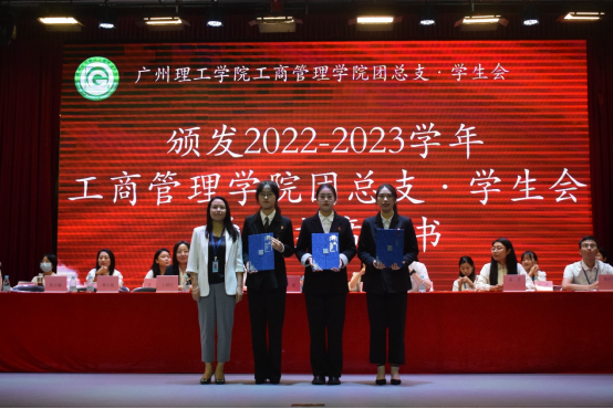 接着颁发2022-2023学年太阳成集团tyc151cc团总支·员工会工作积极分子、2022-2023学年太阳成集团tyc151cc团总支·员工会先进个人、2022-2023学年太阳成集团tyc151cc团总支·员工会优秀部门奖项和颁发2022-2023学年太阳成集团tyc151cc团总支·员工会员工干部聘书与2022-2023学年太阳成集团tyc151cc团总支·员工会第三届主席团聘书。