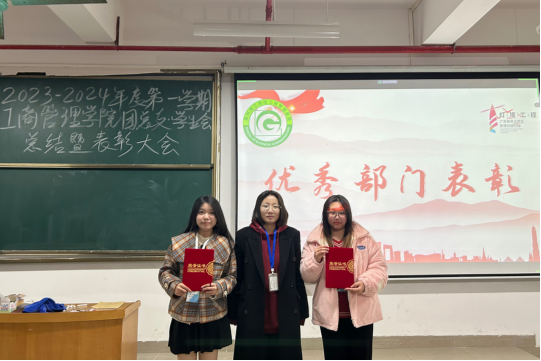 随后进行表彰及颁奖,其中工作积极分子名单:张珮妍、黄美、张丽君,姚诗欣、李林浩、江琳潇、曾惠耀、苏静蕾、姜永康、陈海童、刘增州、曾铄涵;先进个人名单:吴芊芊、何锦辉、姚潇虹、陈斯婷、廖冰、官裕茹、谢洁莹、欧阳湘;优秀部门:团总支宣传部、团总支组织部。