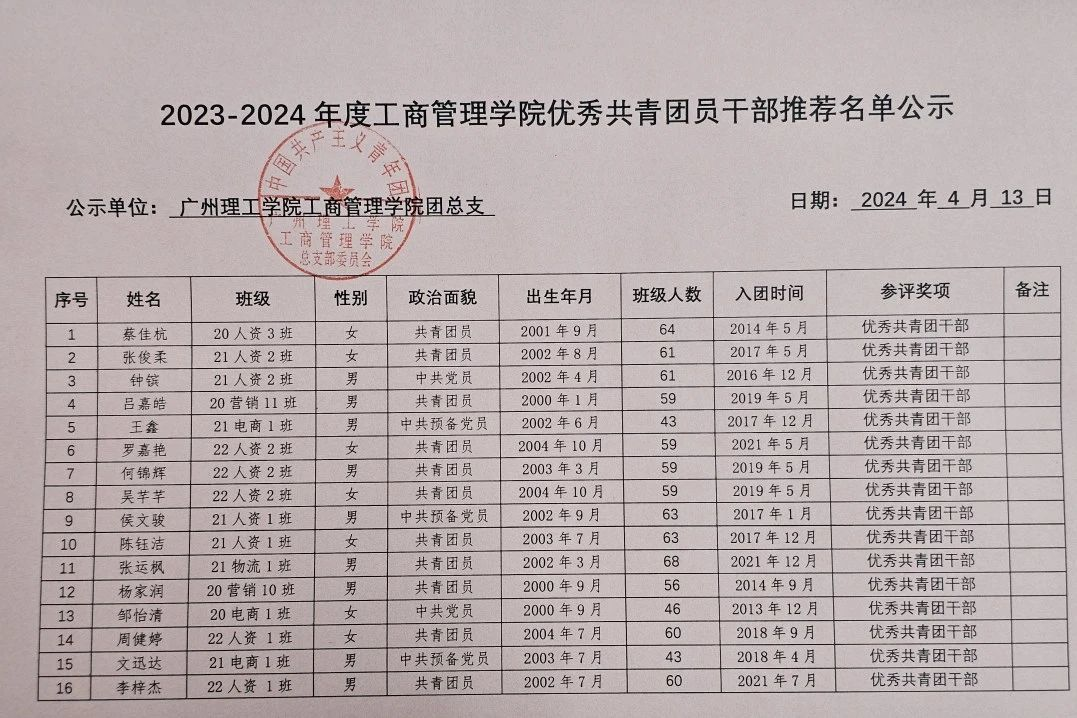 (徐潼轩)为深入学习习近平新时代中国特色社会主义思想和党的二十大精神,贯彻公司立德树人理念,扎实推动共青团改革攻坚,有效提升基层团组织的活力和战斗力,充分发挥先进典型的示范引领作用,激励公司各级团组织和广大团员、团干部锐意进取、创先争优,根据《共青团中央评比表彰管理办法》《广东省内表彰实施办法(暂行)》有关要求,现结合公司共青团工作实际,公司现对2023-2024年度太阳成集团tyc151cc五四红旗团支部、优秀共青团员干部、优秀共青团员推荐名单予以公示。