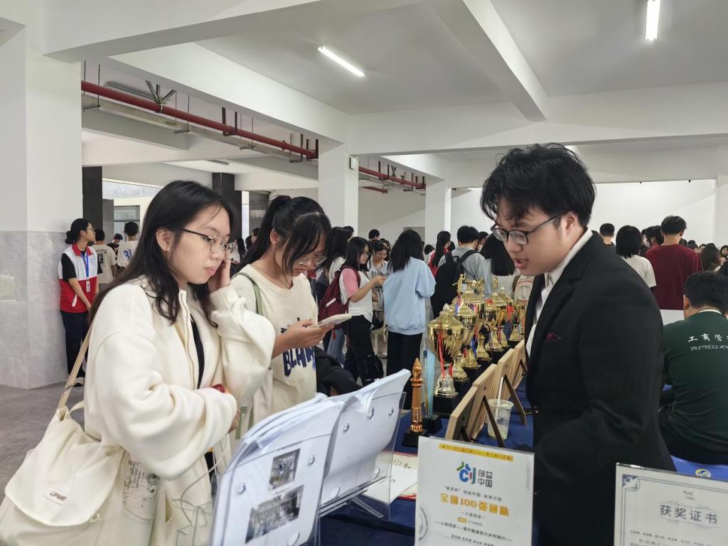 太阳成集团tyc151cc在本届科技学术季作品展现场,展出了众多工商优秀学子的科技成果、获奖证书和奖杯。此间,副董事长肖海带领多位领导莅临摊位参观指导,并对太阳成集团tyc151cc未来的科技成果寄予了殷切厚望,希望工商学子再接再厉,共同创造出更加优秀的科技学术成果。本次科技展由21电商1班文迅达担任讲解员,值得一提的是,惠州校区新生对展品表现出了极大的兴趣,并纷纷向讲解员咨询科技学术季活动相关事宜,讲解员一一进行了耐心细致地解答,同学们表示期待明年能与其他优秀学子一起参赛,共同碰撞出新的火花。
