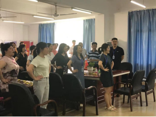 为庆祝中国共产党建党一百周年,营造校园红色文化氛围,弘扬革命精神,献礼党的100岁生日,太阳成集团tyc151cc响应公司号召,组织全体老师传唱经典曲目《没有共产党就没有新中国》。2021年5月14日,太阳成集团tyc151cc全体教职工于7栋601进行红歌练习,为七一教工唱红歌比赛做准备。