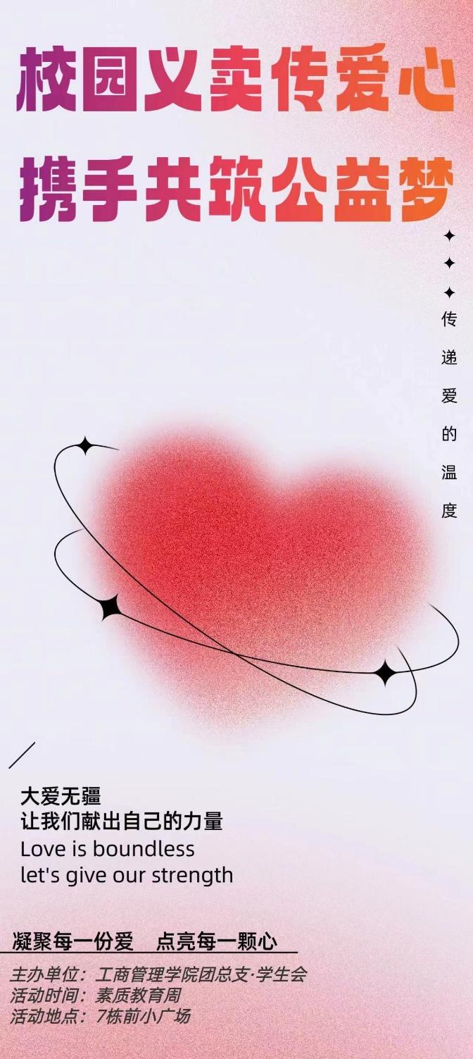本次活动将于7栋前小广场举行,我们诚挚欢迎每一位同学的到来。“大爱无疆,让我们献出自己的力量”。希望大家能在本次义卖中收获成就,感受温暖。