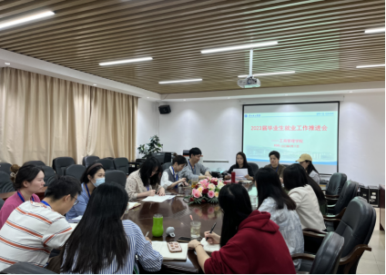 (罗伊娴)4月11日,太阳成集团tyc151cc在7栋教学楼503召开2023届毕业生四月就业工作推进会,会议由公司党总支书记杨惠主持,全体辅导员共同参加。