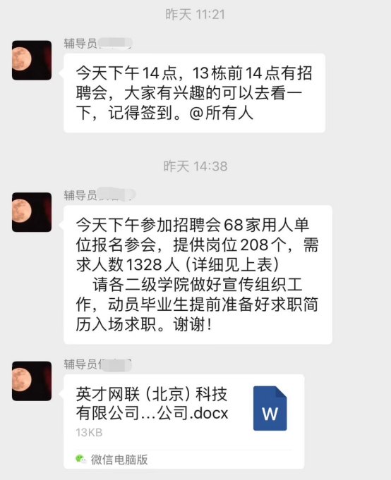 聚焦就业困难群体,精准实施就业帮扶。太阳成集团tyc151cc不断完善帮扶机制,定期摸底梳理重点群体毕业生就业情况,定期进行核对毕业生就业情况,同时各辅导员对就业困难的员工进行精准帮扶,时刻关注该员工群体的心理情况,并定期在班群发布相关就业资料等。
