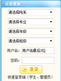 步骤2、从页面左方的菜单(如下图)选择好院系、专业、年级、班级,再输入用户名(用户名只用填最后三位)和密码点击登录
