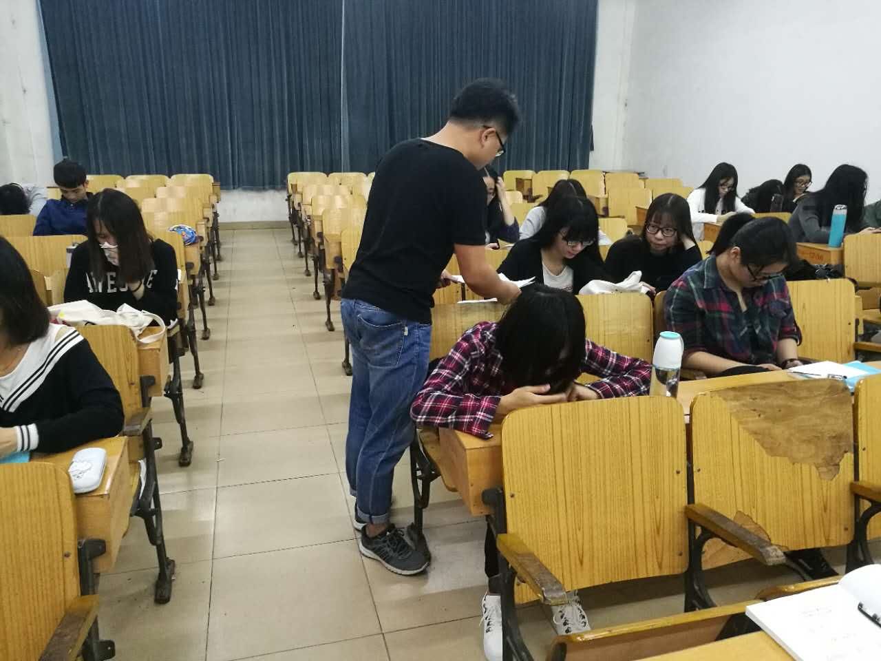 19点30分,管理人俱乐部的大一大二干事集中于6栋一楼咨询台前做宣传准备工作,主席罗冠文向干事们讲解走班宣传的主要内容及注意事项。