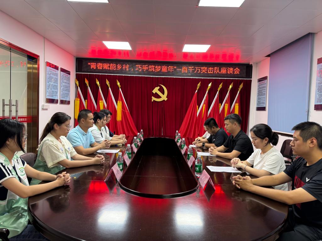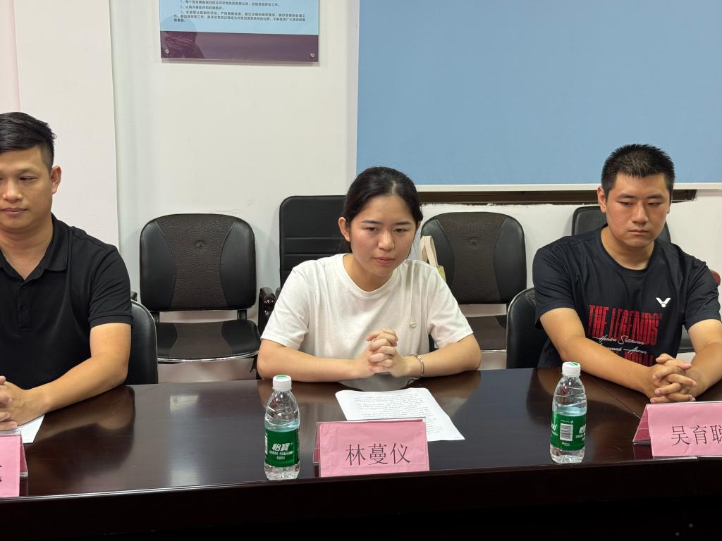 活动伊始,实践队与指导老师李玉权同红卫社区共青团书记余如龙、居委会副主任郑期中、东海街道驻村干部林蔓仪等开展座谈交流。会上,余如龙书记对实践队的到来表示热烈欢迎;林蔓仪干部详细介绍了红卫社区的建设成果与未来规划;李玉权老师阐述了公司“三下乡”实践活动的宗旨与目标;队长温芸芸则具体介绍了本次暑期DIY手工课堂的设计理念与活动安排。四方围坐,共绘社区教育新图景。