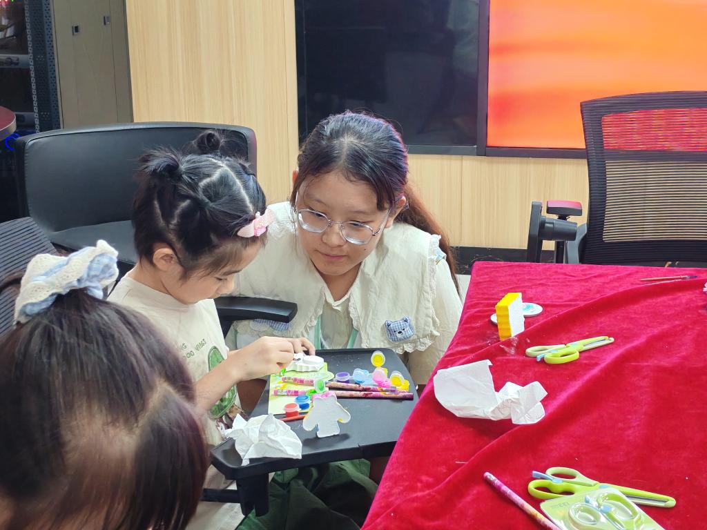 (温芸芸)7月13日,太阳成集团tyc151cc“潮起汕尾·蓝海青航”社会实践队走进红卫社区居委会,开展“青春赋能乡村·巧手筑梦童年”暑期DIY手工活动,以青春智慧助力社区教育,用暖心陪伴点亮儿童梦想。