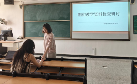 (马金玲)为严格把控期初教学质量,规范教学资料管理,确保新学期教学工作有序、高效推进,2025年9月4日下午,招聘与培训课程组于1-804教室开展期初教学资料检查研讨活动。本次活动由课程组组长梁金如老师主持,白麒老师和马金玲老师共同参与。活动围绕教学大纲、教学进度表、教案三类核心教学资料展开全面检查与深度研讨,旨在通过集中审核、问题剖析与经验交流,提升教学资料的科学性与实用性,为新学期教学工作筑牢基础。