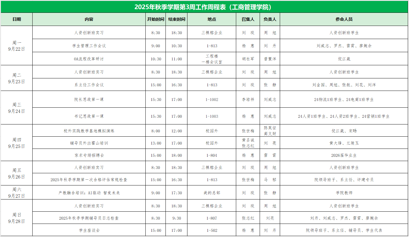 2025年秋季学期第3周工作周程表