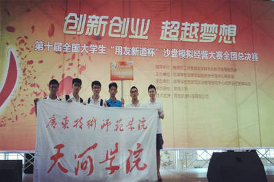 本系讯(通讯员:金泓) 2014年7月19日第十届全国老员工“用友新道杯”沙盘模拟经营大赛全国总决赛在辽宁锦州渤海大学隆重开幕,来自全国各地的142所本科高校聚集于此一决高下。公司管理系代表队在广东省总决赛中取得佳绩脱颖而出,有幸参加渤海大学全国总决赛。肖振华老师带队,陈文飞、陈宇立、张晓鑫、金泓、刘燕丰五名队员组成的广东技术师范公告天河公告代表队参加了本次国赛。