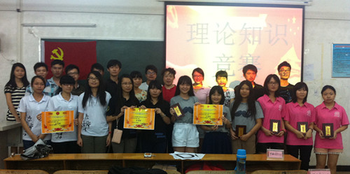 (通讯员:杨培仁)为了响应学习十八大精神热潮,增强支部党员积极分子对党的理论知识的认识,提高员工学习党务知识的热情,我系员工第一党支部于5月21日19:30在六栋216举办了管理系员工第一党支部第一届“党的理论知识”竞赛。