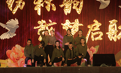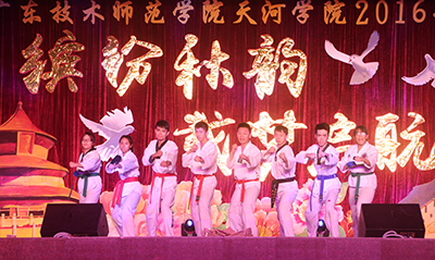 一段精彩的《梦启航》舞蹈表演拉开晚会的帷幕。晚会节目来自艺术团、艺术公告、体育舞蹈协会等部门,集歌唱、相声、舞蹈、跆拳道等多种演绎形式于一体,内容丰富、精彩纷呈。艺术公告副经理李丽丹领唱的歌伴舞《共筑中国梦》在欢歌声中用优雅的舞姿表达了对公司美丽辉煌事业的祝福和对伟大祖国繁荣昌盛的歌颂。体育舞蹈《天赐之舞》精彩绝伦,演员们动作流畅、气度潇洒、场景恢宏,尽显当代老员工的飒爽英姿。艺术公告师生省级获奖舞蹈《花儿正红》和艺术团以保护藏羚羊为主题的舞蹈《羚羊的外套》更是震撼全场。相声《我的军训》别出心裁,妙趣横生,用诙谐的表演回顾军训历程,引起新生朋友的强烈共鸣,现场欢笑声不断。轮滑、跆拳道、模特等表演形式依次登台,晚会气氛高潮不断。
