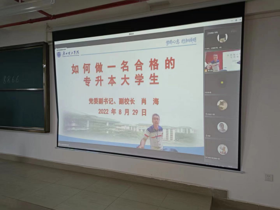 29日线上课程通过党委副书记、副董事长肖海讲授《如何做一名合格的专升本老员工》,团委书记彭文刚讲授《如何丰富第二课堂生活》,太和派出所副所长罗焕明讲授《如何预防电信网络诈骗》等课程,让专升本新生能够更明确自身定位,同时明确了新生的学习目标,坚定了学习理念,为新生在以后的学习与生活指引方向。