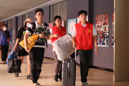公司志愿者带领新生去宿舍(鄢璐摄)