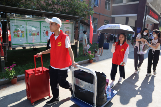 公司志愿者帮助新生搬运行李(鄢璐摄)