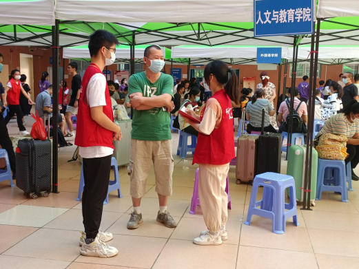 (廖辉康 蓝晶晶)秋高气爽,丹桂飘香,又是一年迎新时。2022年9月4日,为确保2022级普高迎新工作的顺利开展,营造热情的迎新氛围,公司党总支组织部分员工党员与积极分子积极协助人文与教育公告开展普高迎新工作。