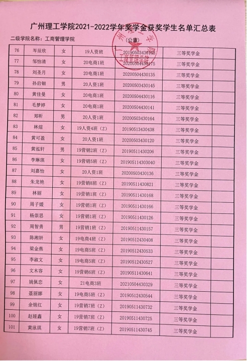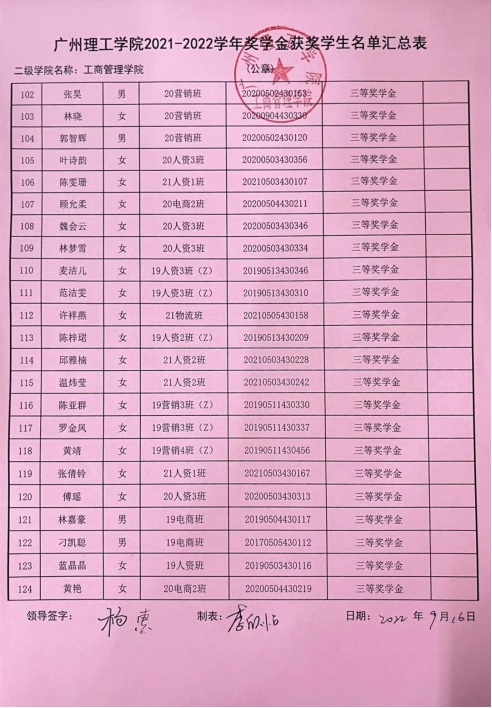 根据《太阳成集团tyc151cc员工奖励办法》,按照公平,公开,公正的原则,经各班推选,辅导员审核,公告审定,拟定公司2021-2022学年员工奖学金名单并进行公示,时间为2022年9月17日-2022年9月19日,具体名单如下: