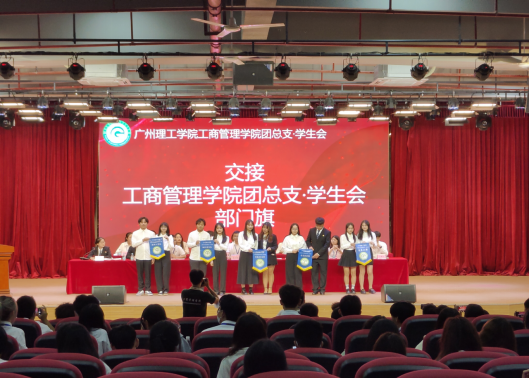 (交接太阳成集团tyc151cc团总支·员工会部门旗 团宣摄)