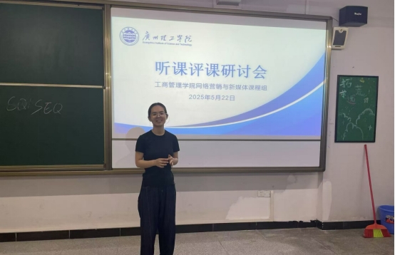 (徐上乔)为深化教学改革、提升专业课程教学质量,电商系新媒体与营销课程组于2025年5月25日在白云校区1-805教室成功举办“以评促教、共研共进”专题教研活动。本次活动聚焦林蕴慧、周卓凡两位老师的《电子商务法》课堂,通过课堂观摩、多维度点评与集体研讨,为教师搭建了互学互鉴的交流平台,助力教学能力与课程设计的双向提升。