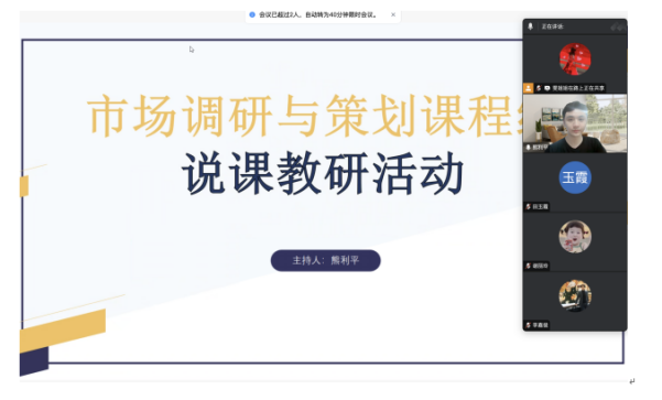 (贾雯)为更好地贯彻本科教学合格评估指标体系要求,落实《广州理工质评函2025年17号文件》的检查任务,2025年6月10日,市场调研与策划课程组在线上开展一场说课模拟演练教研活动,活动由课程组负责人熊利平老师主持,课程组负责人熊老师先介绍了本次说课模拟演练的背景、目的和意义,并强调了说课在提升教学质量、优化教学设计方面的重要作用。他鼓励教师们积极展示自己的教学理念和课程设计,通过互相学习和交流,共同提升教学水平。他提出:“此次活动是课程组老师对教学思维的凝练,不仅能提升教师的教学设计能力和语言表达能力,推进教学质量提升,更是响应公告积极备战本科教学合格评估的重要举措。”