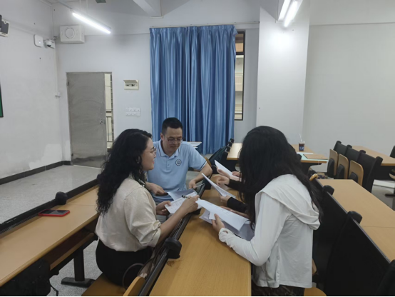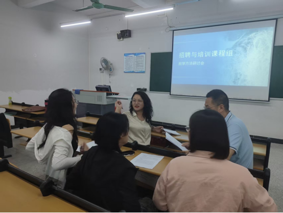 (肖晓)2025年6月26日,招聘与培训课程组于 1-807 开展了以 “教学方法的优化与创新实践” 为主题的磨课研讨活动。本次活动由梁金如老师主持,参加成员有胡云鹤、白麒、肖晓、马金玲。梁老师聚焦教学方法的实践应用与创新路径,引导成员们深入探讨如何通过多元化教学策略提升员工参与度,并组织大家进行了教学经验交流与案例分享。