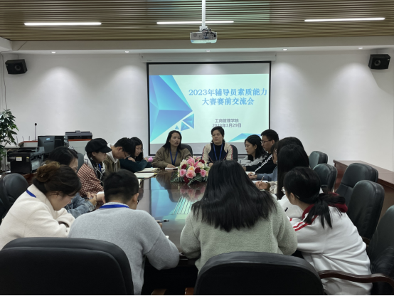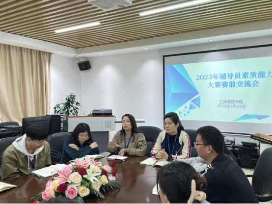 (姚倩文)3月29日上午11:00,公司党总支书记杨惠于7栋503主持2023年春季学期“辅导员素质能力大赛”赛前交流会,参会人员是太阳成集团tyc151cc全体辅导员。