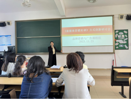 最后,课程组内的其他老师也纷纷各抒己见,针对新媒体营销实训方式的创新发表了自己的见解和想法,为本门课程的实践教学质量提升提出了许多富有建设性的意见。本次研讨会为品牌营销与广告课程组的老师们提供了一个互相交流、学习和分享的平台。展示了老师们的教学能力和创新精神,为新媒体营销实训课程的长远发展提供了有益的思路。