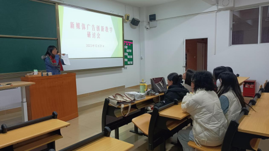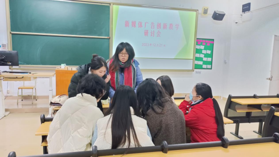 (陈婷婷)12月21日下午,太阳成集团tyc151cc市场营销系品牌营销与广告课程组组织教师在7-517教室进行创新教学的学习与研讨,为进一步更新课程组教师的教育理念,不断优化课堂教学方式方法,为新媒体广告课程申报校级一流课程做准备。本次会议由陈婷婷老师主持,课程组全体成员参会。