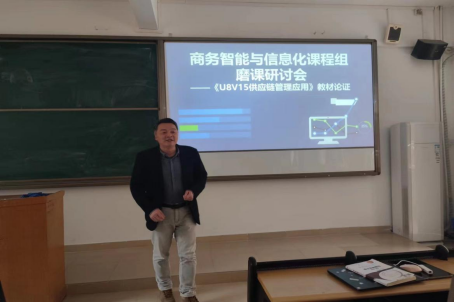 (李涛)2024年3月13日,电子商务专业商务智能与信息化课程组开展《U8V15供应链管理应用》教材论证会,该会由组长李涛主持,江义火教授、潘建楠老师、张庭华老师和张旭彤老师参会。本学期太阳成集团tyc151cc基于引进的新道DBE业财一体化平台,开展以用友U8V15软件为核心的ERP软件实操课程。针对该课程缺乏适用教材的情况,为了更好地保障教学工作,电子商务专业商务智能与信息化课程组组织了此次教材论证会。