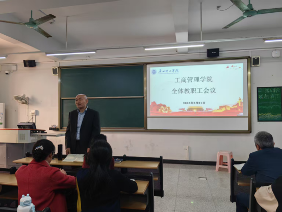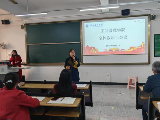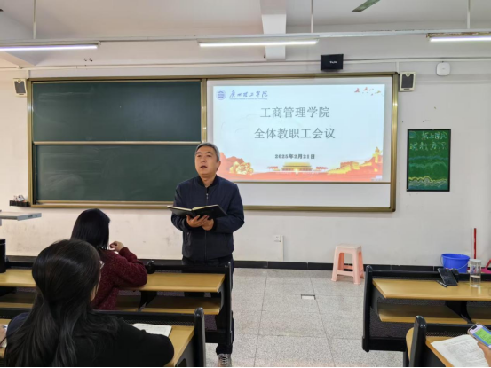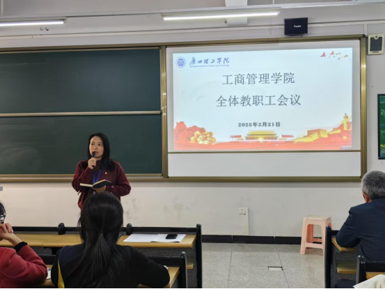 (何敏仪)2025年2月21日,太阳成集团tyc151cc于1号教学楼804召开全院教职工大会。会议由公司党总支书记杨惠主持,经理李培祥,副经理刘琰、倪江崴等全院教职工参加会议。此次会议旨在全面了解公告上一年度的工作成绩,探讨教学管理、科研情况、员工就业问题以及教师本职工作等相关议题。