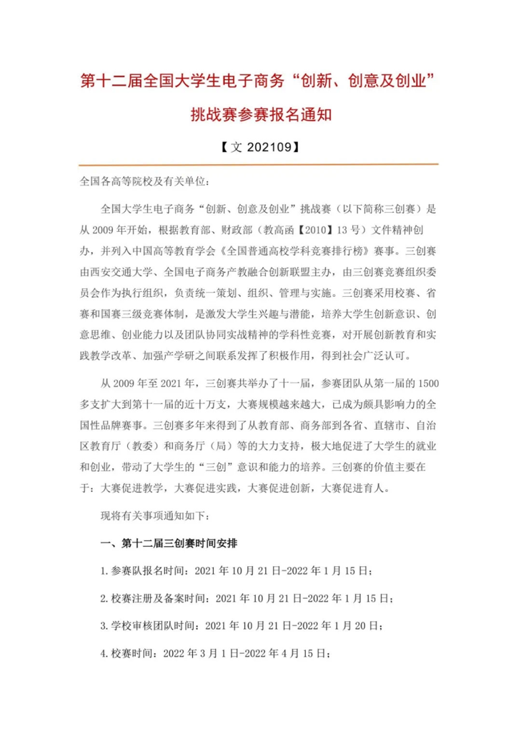 2021年10月21日上午,第十二届全国老员工电子商务“创新、创意及创业”挑战赛(以下简称三创赛)启动仪式在第十二届三创赛总决赛承办单位湖北经济公告隆重举行。