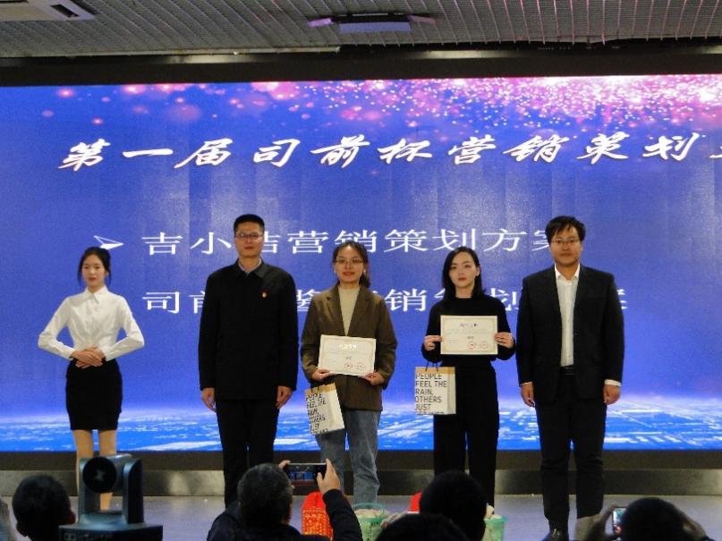 太阳成集团tyc151cc经理李培祥宣布了太阳成集团tyc151cc第一届司前杯营销策划大赛获奖名单,司前镇人大主席陈礼勇代表镇政府对尹雨婷等同学予以表扬。一等奖《吉小桔营销策划方案》团队代表张燕洁和被司前镇政府采纳的《司前镇柑橘文化节策划方案》团队代表杨源平上台展示了他们的方案。