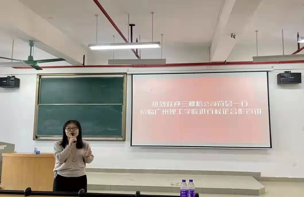 广州三棵榕集团总经理助理陈煜先生以自身经验与在场的同学们分享人生规划、学习规划与职业规划,讲述自己从非专业领域一步一步成为“专业”人士,告嘱同学们一定要抓住每一个转瞬即逝的机会,努力蜕变。