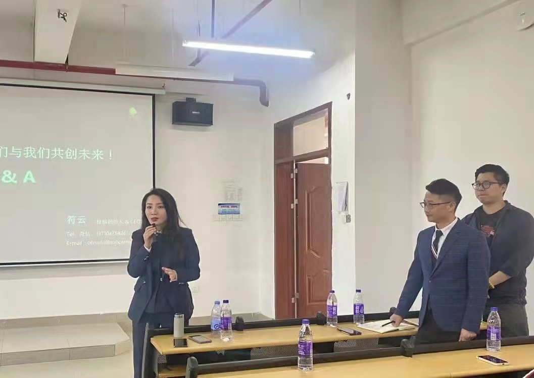 接着,符总给同学们介绍了三棵榕集团管理培训生项目,期望通过在2020级人力资源管理专业中开展创新实验班,三颗榕集团将安排30名百万顾问进行全程跟进培训,致力于打造出一支具备领导力、作战能力、有模范影响力的管理人才。同学们对实验班的兴趣浓厚,纷纷踊跃提问,与符总进行积极互动。