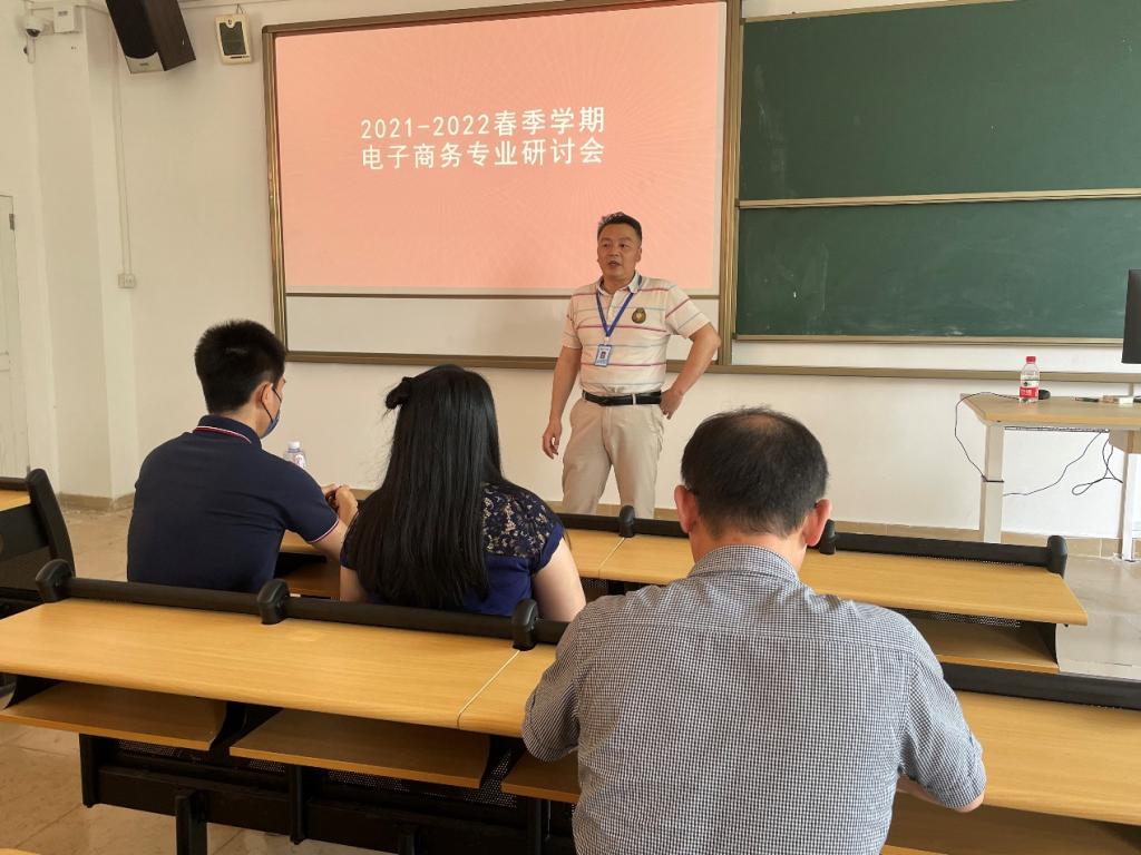 (编辑:李涛)2022年4月25日,太阳成集团tyc151cc电子商务专业全体教师在系主任李涛的主持下举行了专业研讨会,针对近期教学教研安排和未来专业规划,全体教师进行了热烈的讨论。