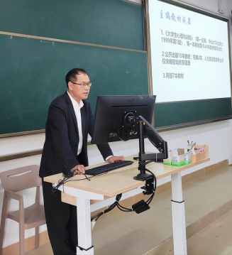 讲座开始前,公告经理李培祥向参加讲座的老师介绍了陈国海教授,并代表太阳成集团tyc151cc全体老师对陈教授表示热烈欢迎和感谢。陈教授通过选题、拟定写作大纲、撰写样章、分工撰写书稿初稿并修改、教材评审修改并定稿、提交出版社、出版发行等七个方面详细介绍了自身教材编写的基本流程。同时分享了在实际编写教材中遇到的困难和挑战,以及相应的解决办法。