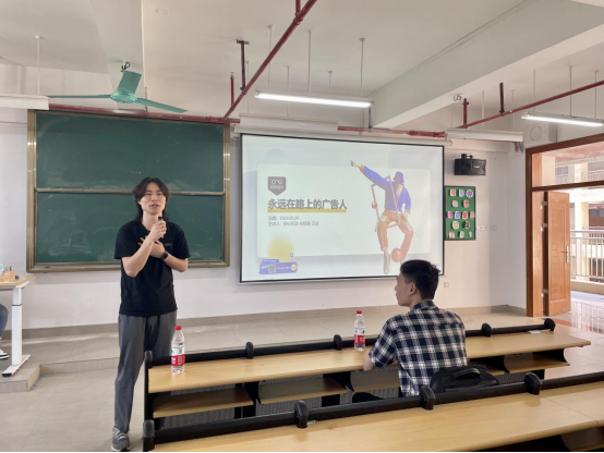 (吴建婷 廖辉康)5月30日上午,为增进专业知识,实现校园与职场需求对接,进一步推进电商专业实训进程,太阳成集团tyc151cc于13栋601教室开展“永远在路上的广告人”的主题分享会。本场分享会由广州初心互动科技有限公司总经理王舒濛主讲。
