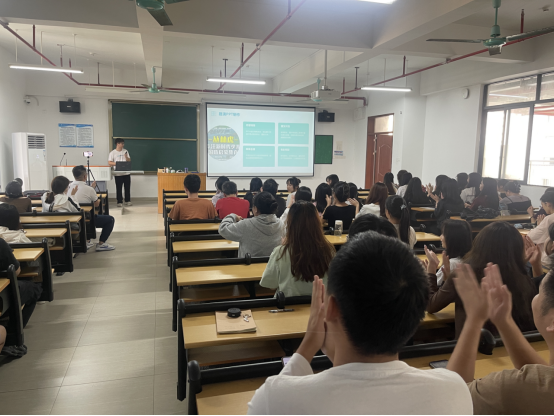 随后,来自20电商2班的常鹏浩同学分享了他的团队在上一届三创赛中的参赛经历和经验。他们团队从选择项目、组建团队到材料撰写、路演答辩,一路走来收获颇丰。常鹏浩同学表示:“参赛的过程不仅是一次学习的过程,更是一次成长的过程。我们学到了如何从实际出发寻找创新点,如何将创意转化为具体的商业模式,如何在团队中协同合作,如何面对挑战和困难。”