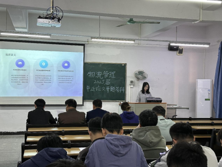 会议伊始,答辩组组长们对答辩流程和要求进行了详细说明,并对毕业生们的努力和准备表示了肯定。随后,毕业生们按抽签顺序依次上台,分别从选题背景与意义、国内外研究现状、初步设想及拟解决的问题、研究方法与手段、设计(创作)提纲、计划进度、参考文献等方面对毕业论文开题报告作了详尽的汇报。研究课题涵盖了物流管理的多个领域,包括但不限于物流数智化、供应链优化、新零售电商物流、绿色物流、跨境电商物流等热点问题。