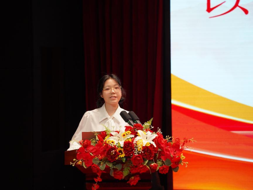 黎海铃同学从思想、学业和实践三个方面进行分享。她在大学期间积极进取,参与各类竞赛并获奖,通过课外阅读、组织实践等不断锻炼自我,思想上积极向党组织靠拢,成绩优异,还通过兼职实现生活费自给自足,展现了自强奋进的精神。她鼓励同学们要勇于探索,持之以恒,才能成就更好的自己。