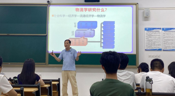 围绕“物流学研究什么?”以及“怎样学好物流管理专业?”这两个问题,刘主任介绍了物流与社会科学-经济学-流通经济学的关系,明确物流学在经济领域中的作用与地位。他鼓励新生关注物流行业的发展趋势。他特别强调了:“大学四年是打基础的阶段,要脚踏实地,把基础打宽一点、厚一点、深一点、牢一点,为以后的人生积累更多的资本,飞得更高、飞得更远......”同时,刘主任给新生提出24字的建言:“夯实理论基础、积极参与实践、拓展知识层面、提高综合素质”。